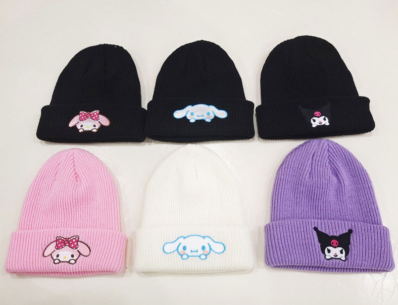 Beanie carton style knit hats – black